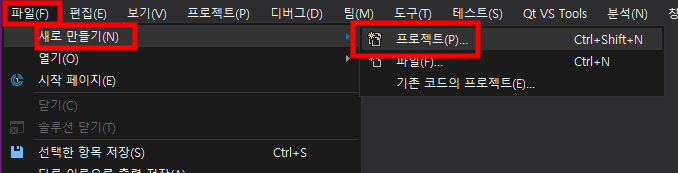Visual Studio 에서 QT 프로젝트 만들기.