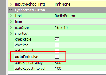 - .ui 에서 QRadioButton 속성에서 autoExclusive 체크 해제.