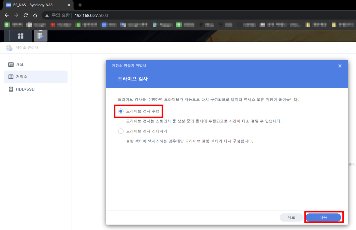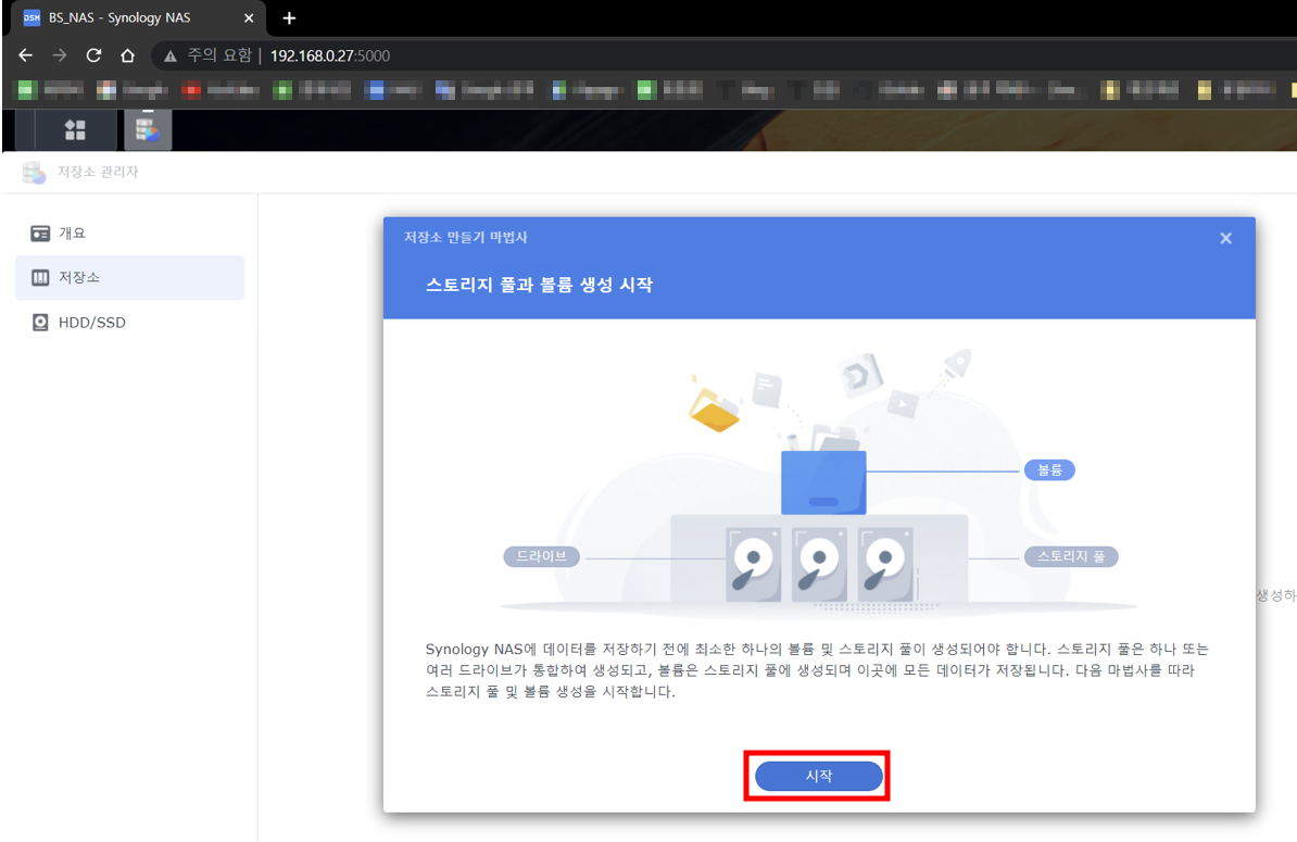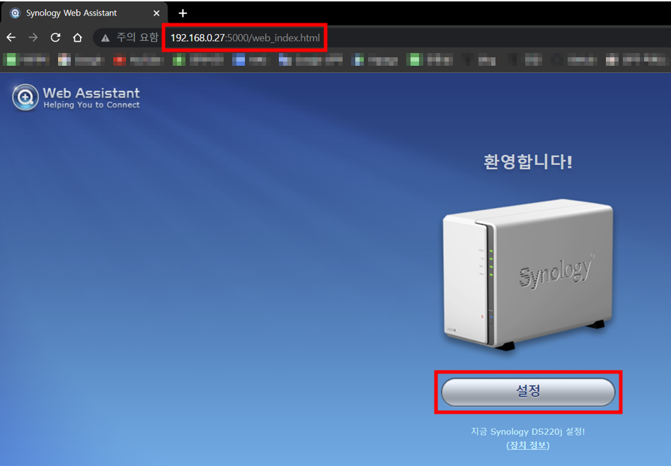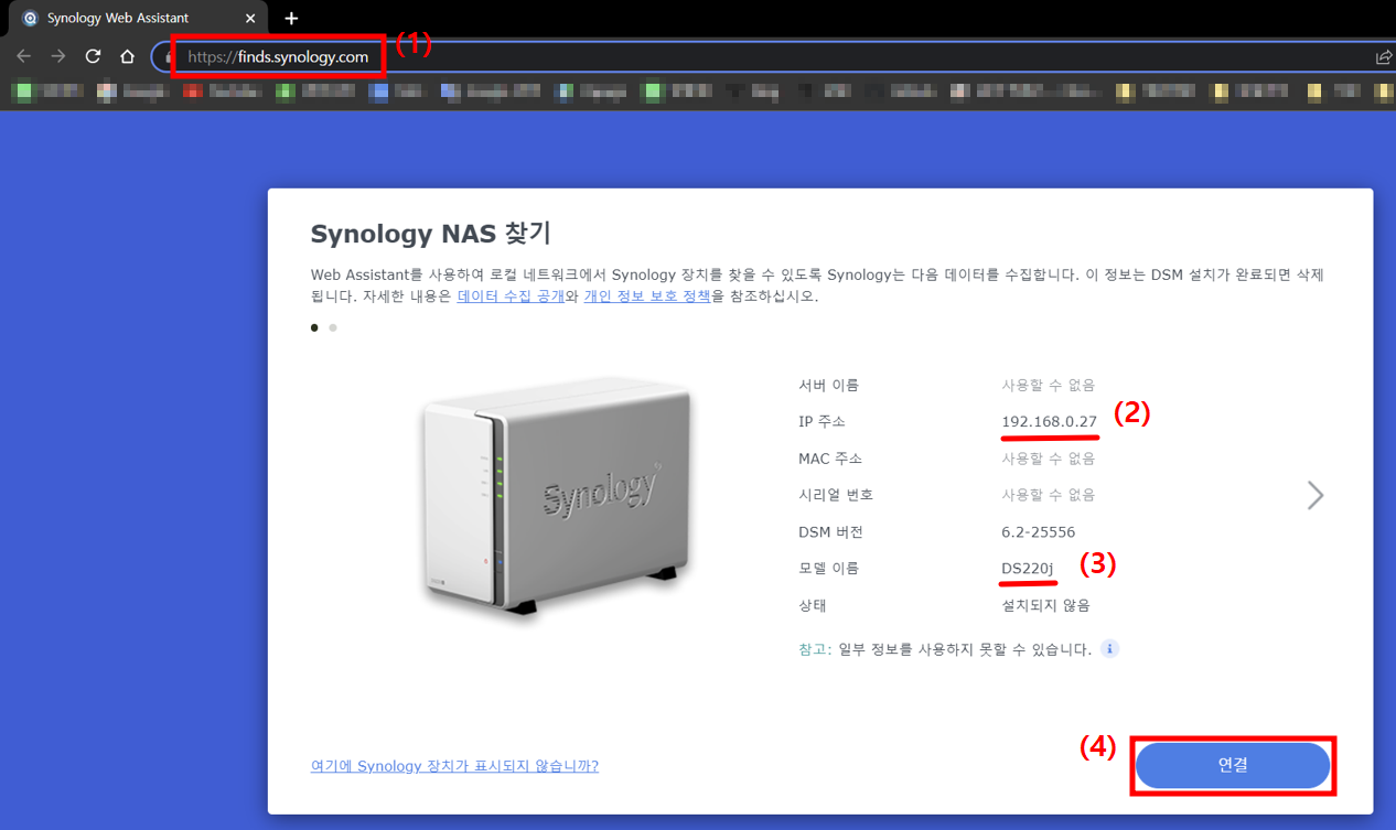 시놀로지 나스 설치 - 웹페이지 접속 까지