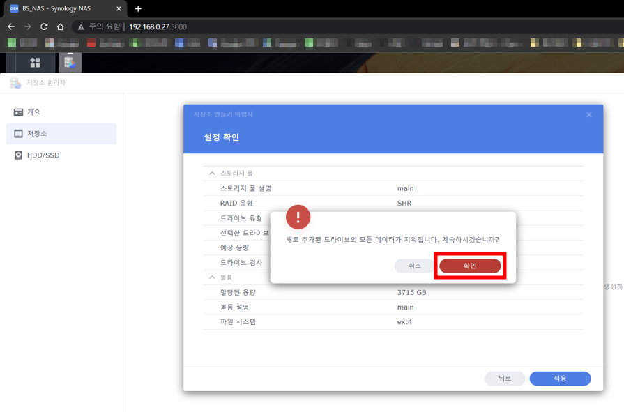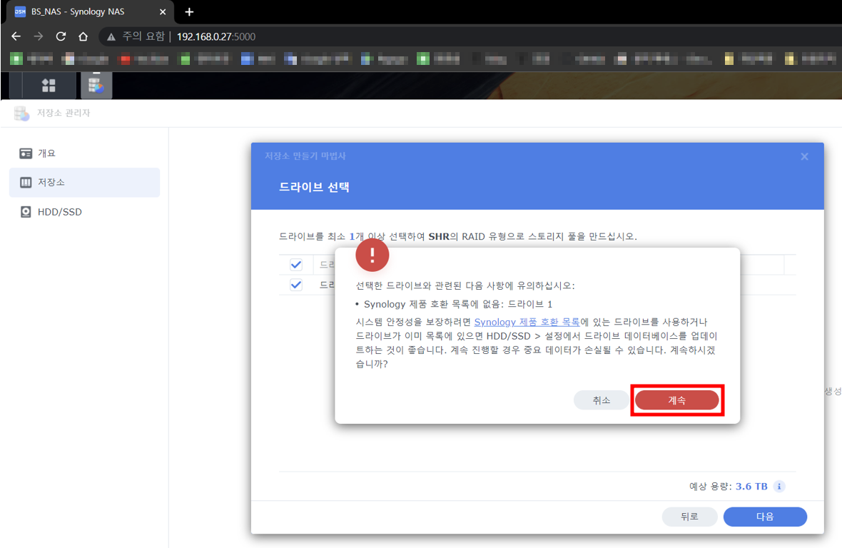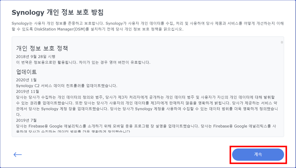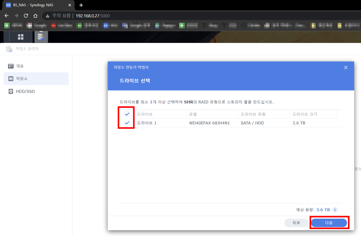 시놀로지 나스 설치 - 웹페이지 접속 까지