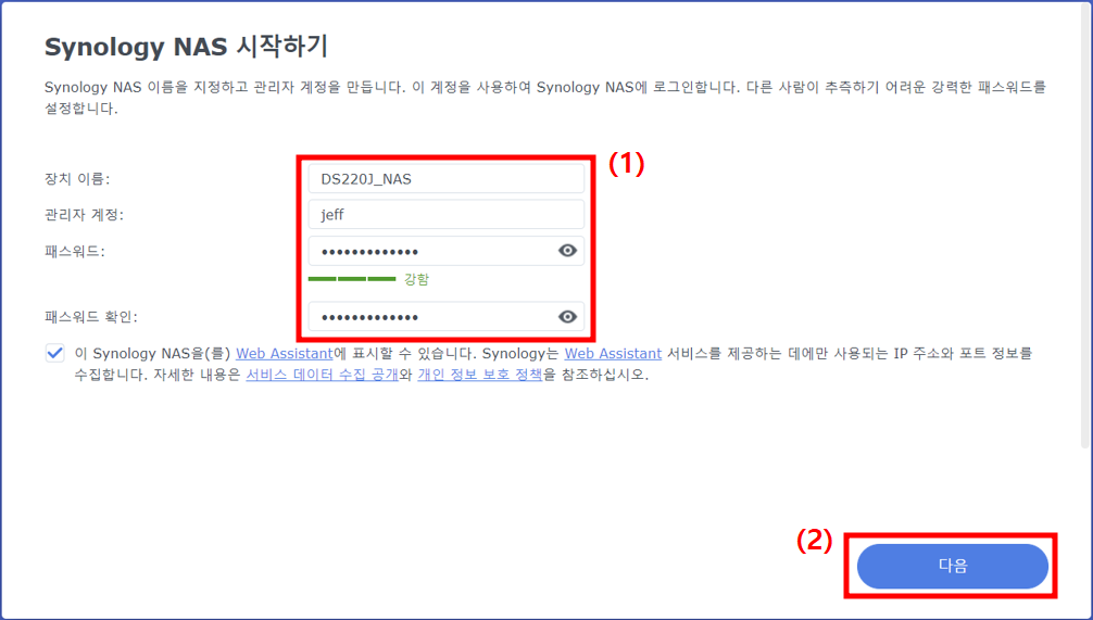 - 시놀로지 나스에 접속할 관리자 계정 생성