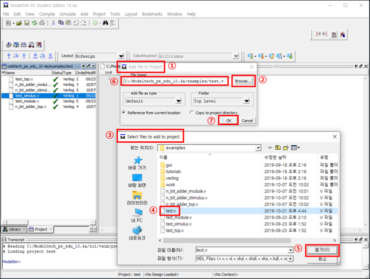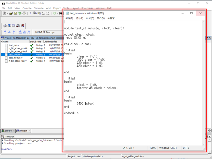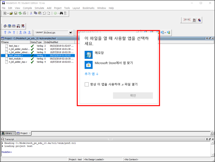 본 게시물은 ModelSim 프로젝트 소스파일이 열리는 과정에서 메모장이 나타나는 현상에 대해