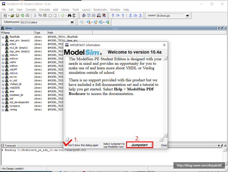 | [ModelSim/Verilog] ModelSim PE Student Edition 10.4a 개발도구 설치 (0) | 2019.09.23 |