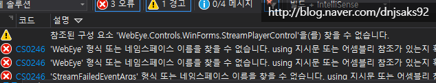 솔루션 탐색기 중 Form1.cs 코드 오류와 참조에 .dll 을 찾을 수 없다고 합니다.
