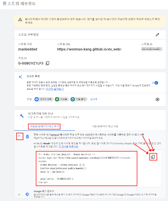 - 구글 애널리틱스에서 제공하는 태그 복사