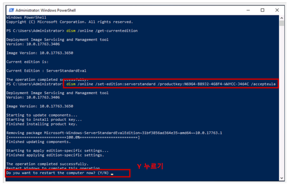 dism /online /set-edtion:serverstandard /productkey:(setupkey) /accepteula (setupkey)
